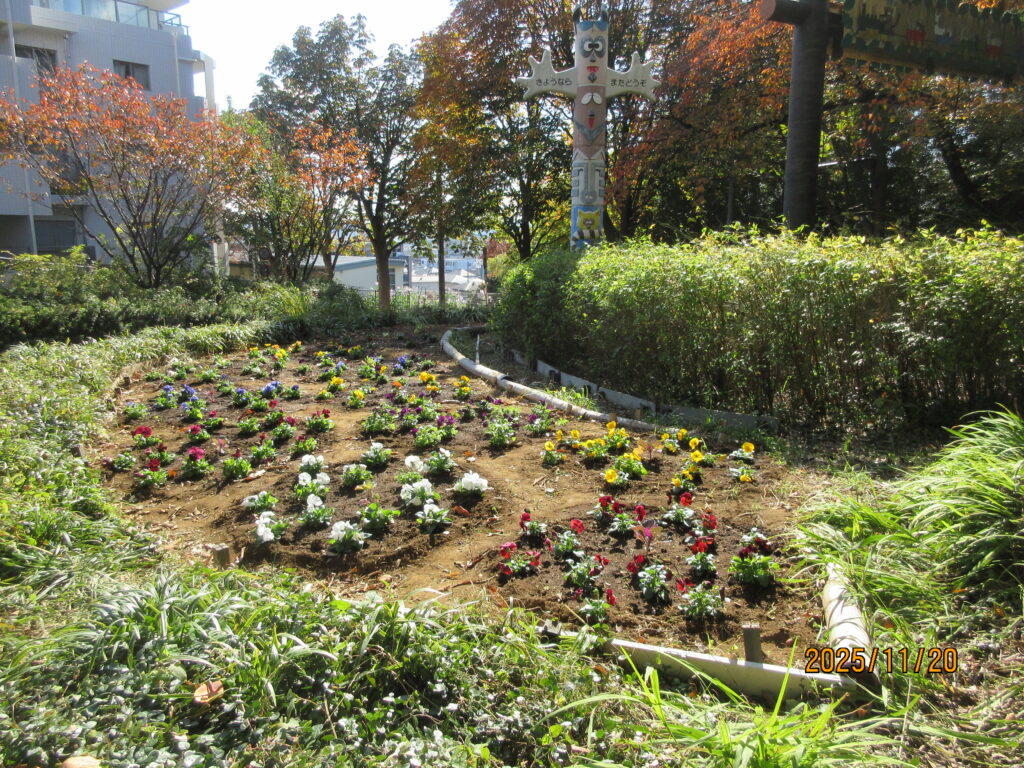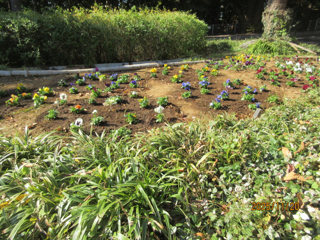 <後日、さいわい加瀬山の会さんが苗を植えた写真を送ってくださいました。花の苗が植えられるとより美しく整えられた成果がわかりますね。来園者の方が喜んでくださりますね!>
